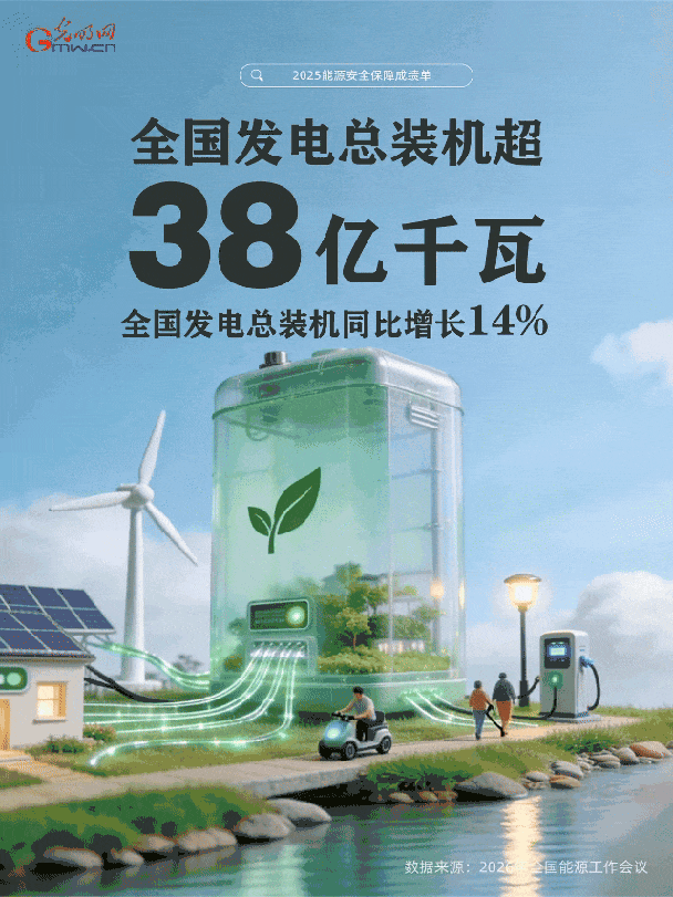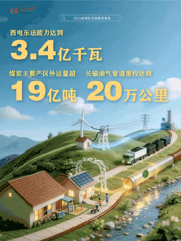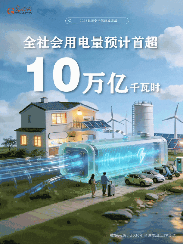 编者按:2025年我国能源安全保障交出亮眼成绩单!全社会用电量首超10万亿千瓦时,原油、天然气产量创历史新高,风电光伏等可再生能源装机与发电量稳步提升……一组组数据彰显了我国能源体系韧性与实力。让我们通过一组动态海报来了解这些亮眼成果。