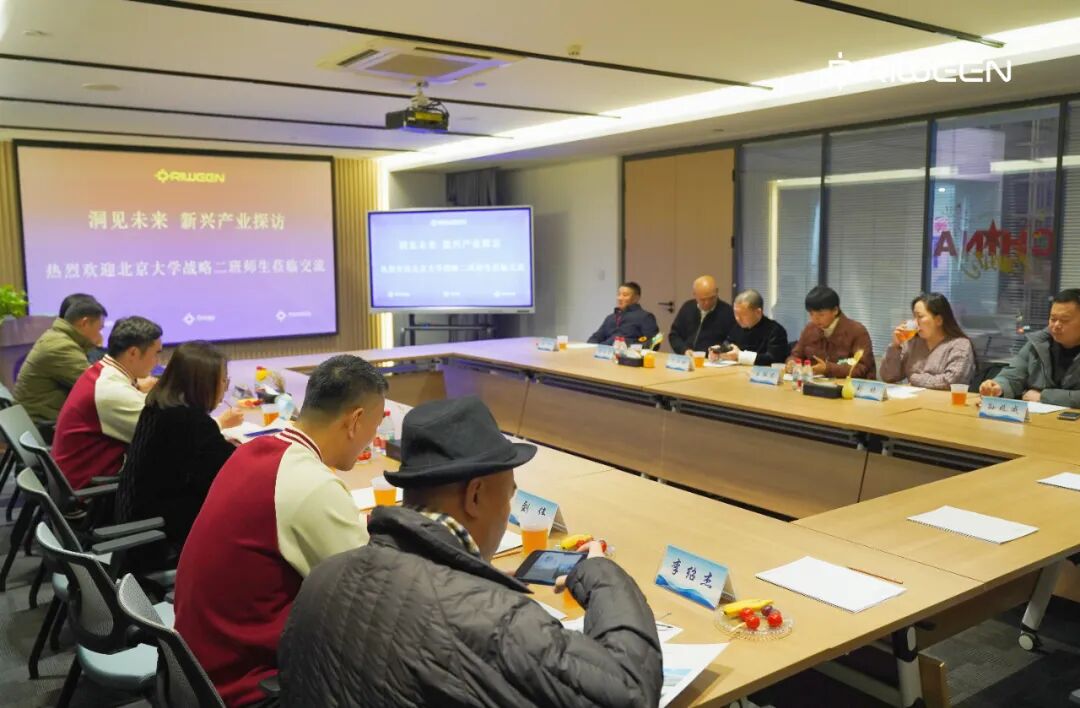 座谈会上,双方围绕新兴产业机遇挑战、人才培养与技术转化等议题热烈讨论。北大师生从战略视角提出深刻见解,鼎为科技分享实践经验,双方凝聚共识,期待未来在技术攻关、人才培养等方面深度协同。